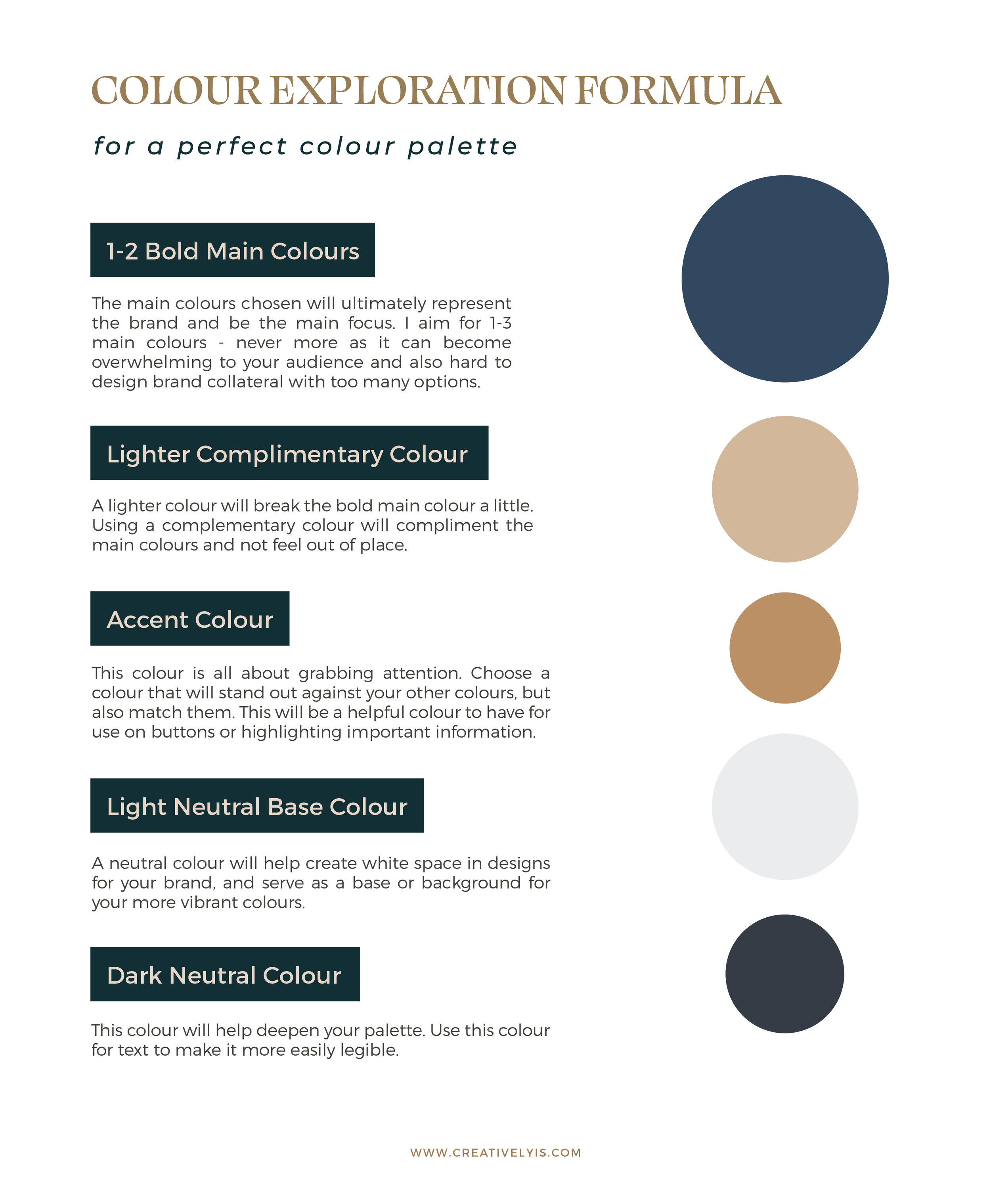 When I explore colour palettes for my clients’ branding, I always keep these in mind. The most important for me is defining the brand’s identity. Once we have that established I can start to pull together colour palette ideas. I use these five things to make it a little easier to narrow down.